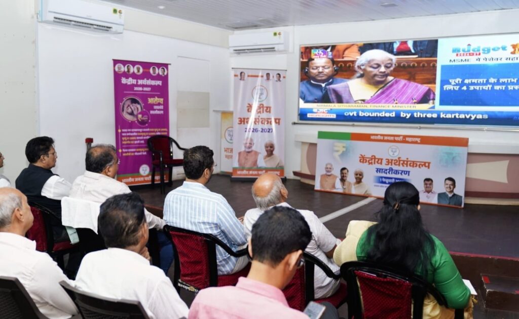 भाजपा प्रदेश कार्यालय में रविवार को केंद्रीय बजट का सीधा प्रसारण आयोजित किया गया था। इस अवसर पर बीजेपी के मुख्य प्रदेश प्रवक्ता केशव उपाध्ये, प्रदेश प्रवक्ता ओमप्रकाश चौहान सहित विभिन्न क्षेत्रों के गणमान्य नागरिक तथा पार्टी पदाधिकारी उपस्थित रहे।