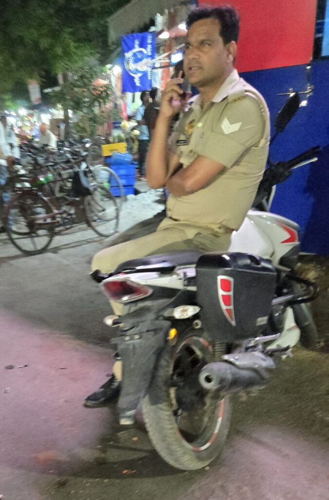 वहीं बुलेट धारी पुलिसकर्मी से एक क़दम और आगे जाकर दूसरे पुलिसकर्मी ने टीवीएस कंपनी की बाइक ली है किन्तु सिक्योरिटी नंबर प्लेट न तो आगे लगा है और न ही पीछे लगवाये है ।