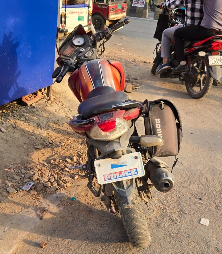 एक अन्य सिपाही ने टीवीएस अपाचे बाइक लेने के बाद आगे पीछे सिक्योरिटी नम्बर प्लेट न लगवाकर बाइक पर लिखवा दिए पुलिस तो हो गया काम